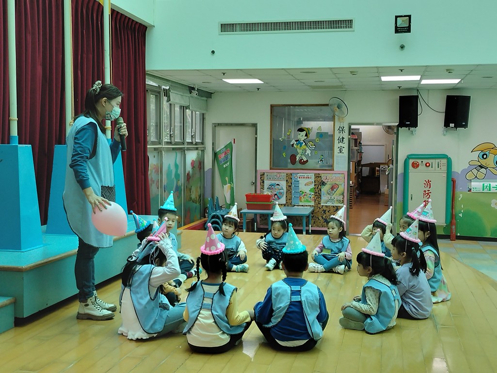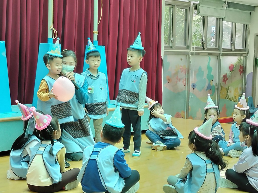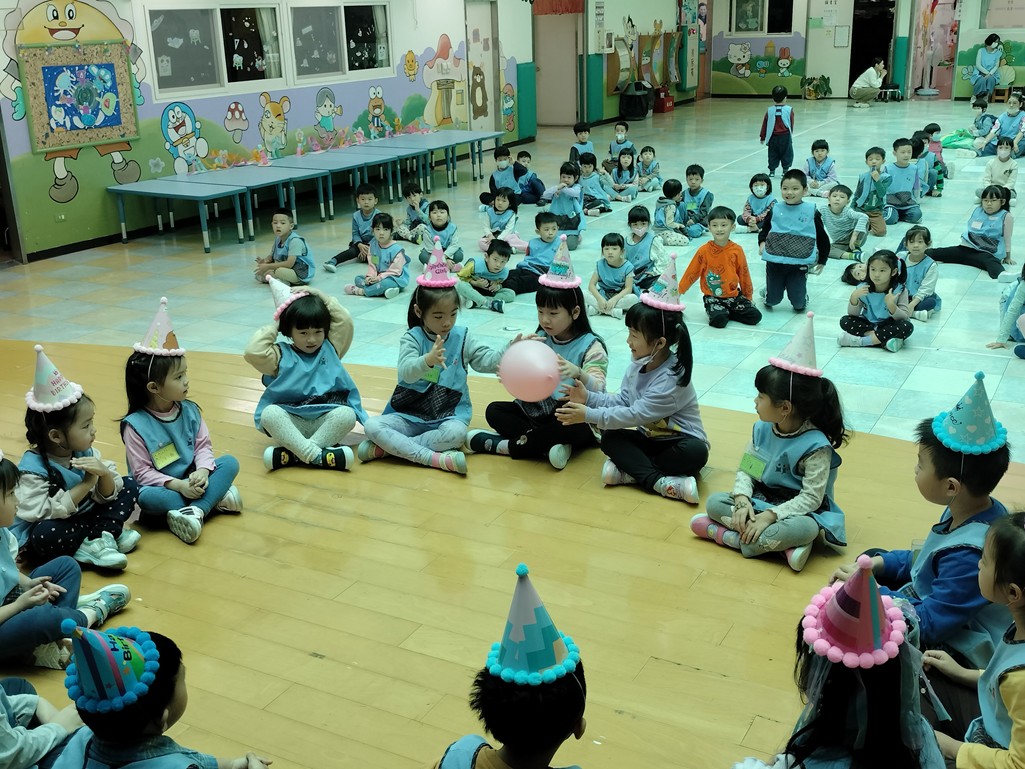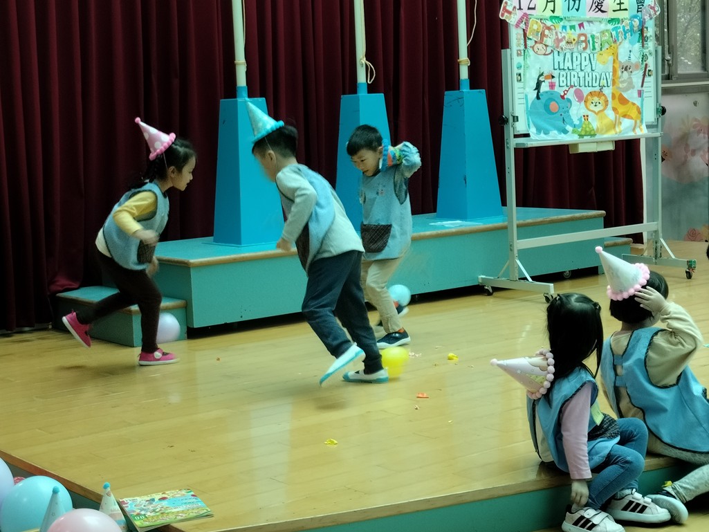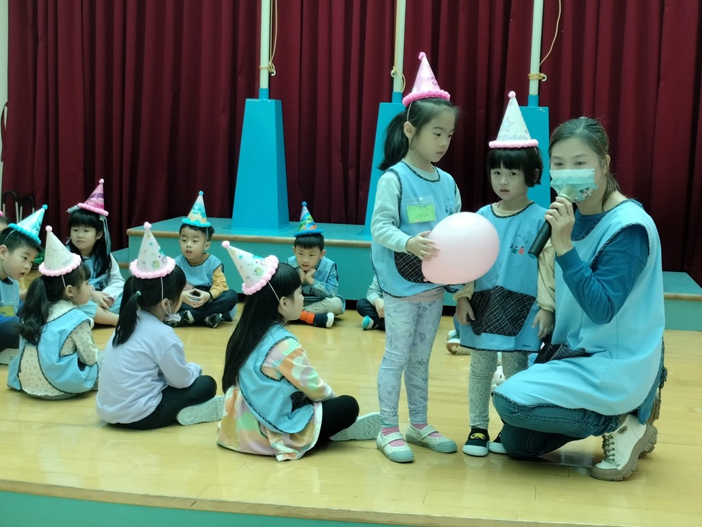 聽到音樂停拿著氣球的小朋友來分享生日願望
